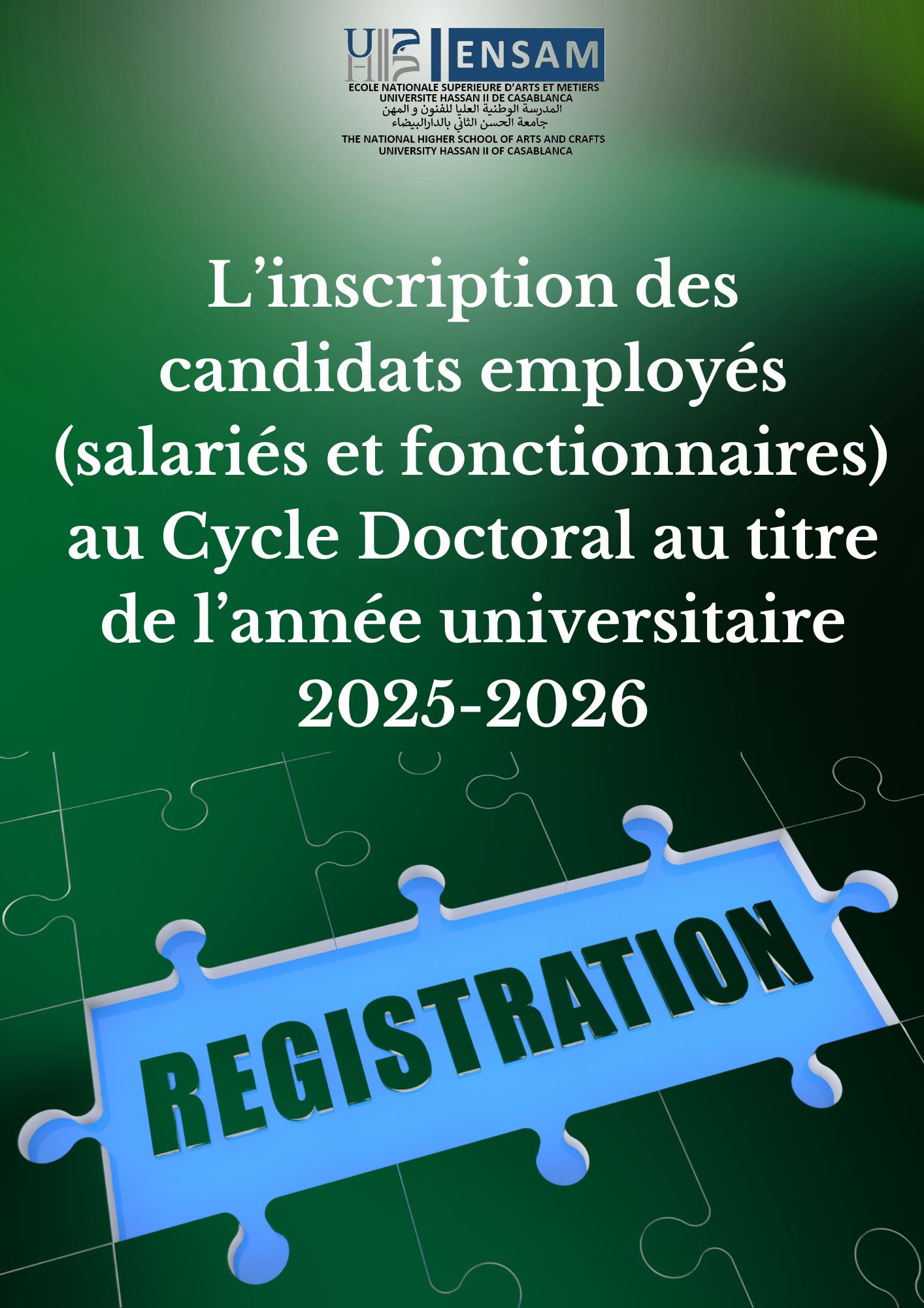 L’inscription des candidats employés (salariés et fonctionnaires) au Cycle Doctoral au titre de l’année universitaire 2025-2026